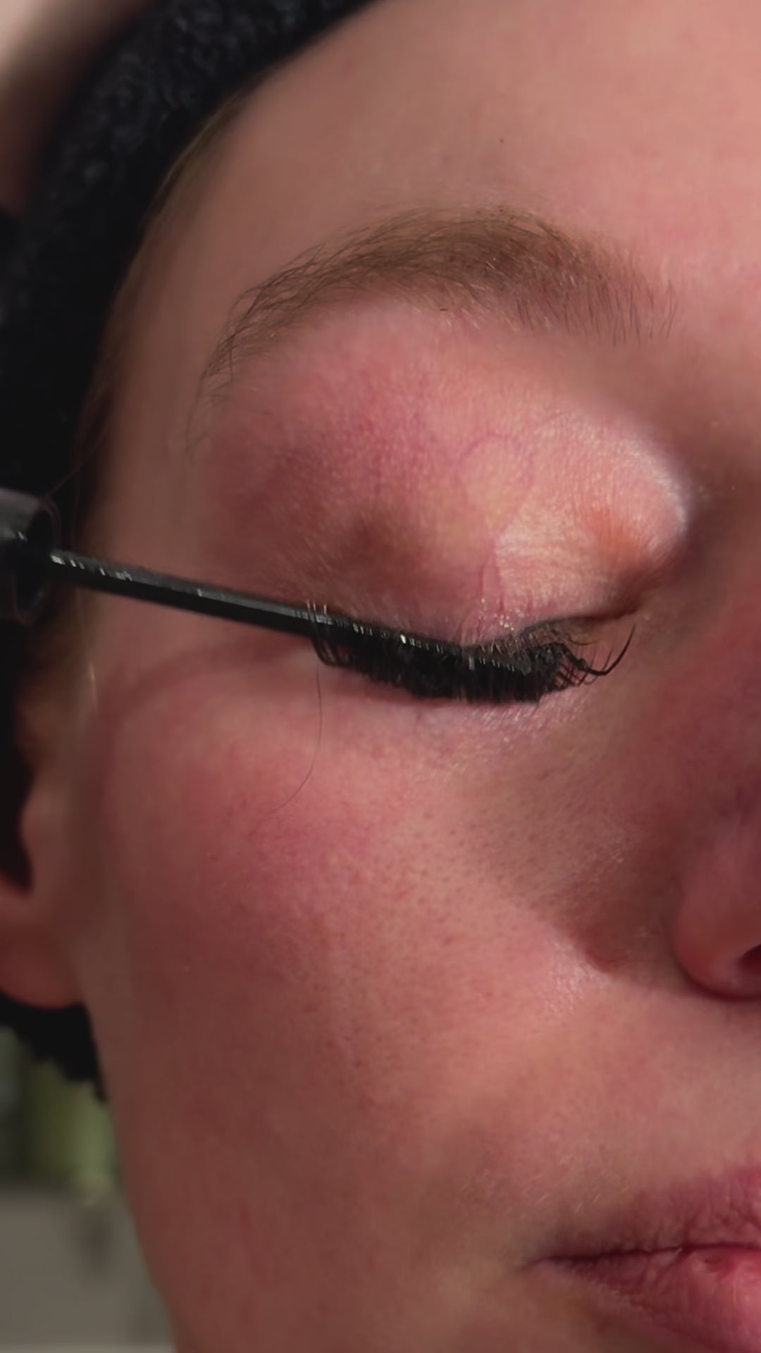- Die Lashes vorsichtig mit dem Finger nach unten abstreifen – ohne Ziehen oder Zupfen.