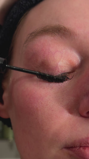 Unser spezieller Wimpernkleber ist so entwickelt, dass er niemals vollständig aushärtet (anders als professioneller Lash-Extensions-Kleber). Der Bond bildet eine weiche, flexible und schonende Schicht um deine Naturwimpern.